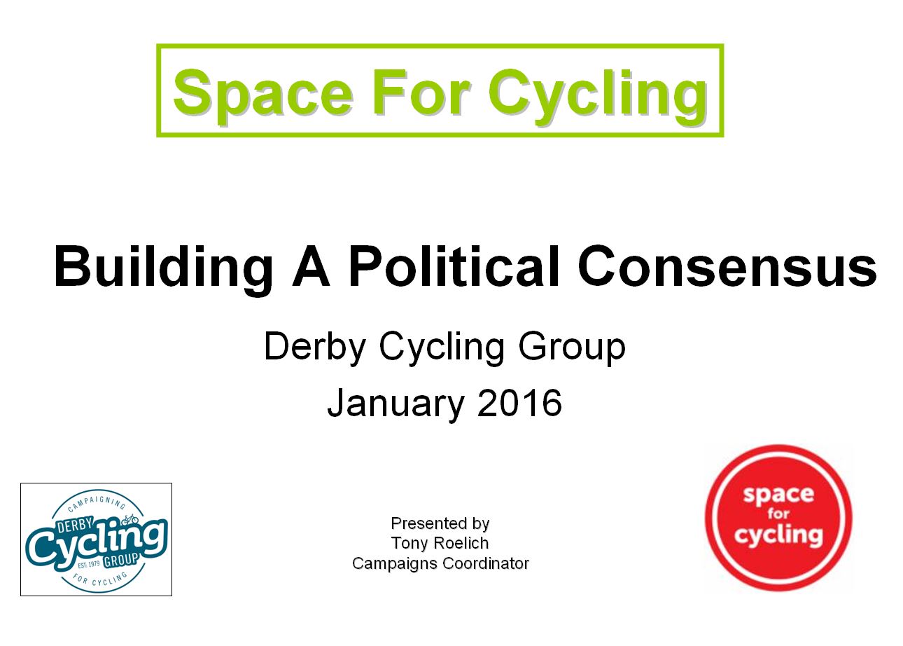 The leaders of all four parties represented on Derby City Council have all received the presentation below from members of Derby Cycling Group.