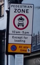 Here, at the bottom of Irongate, motor vehicles cannot access Cornmarket, so the “exception” sign is slightly different to some other places.