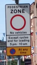 | East Street Exchange Street St Peters Churchyard Sadler Gate | No access for cyclists or motor vehicles on these one way streets, at any time, except for loading between 5pm to 10am. |