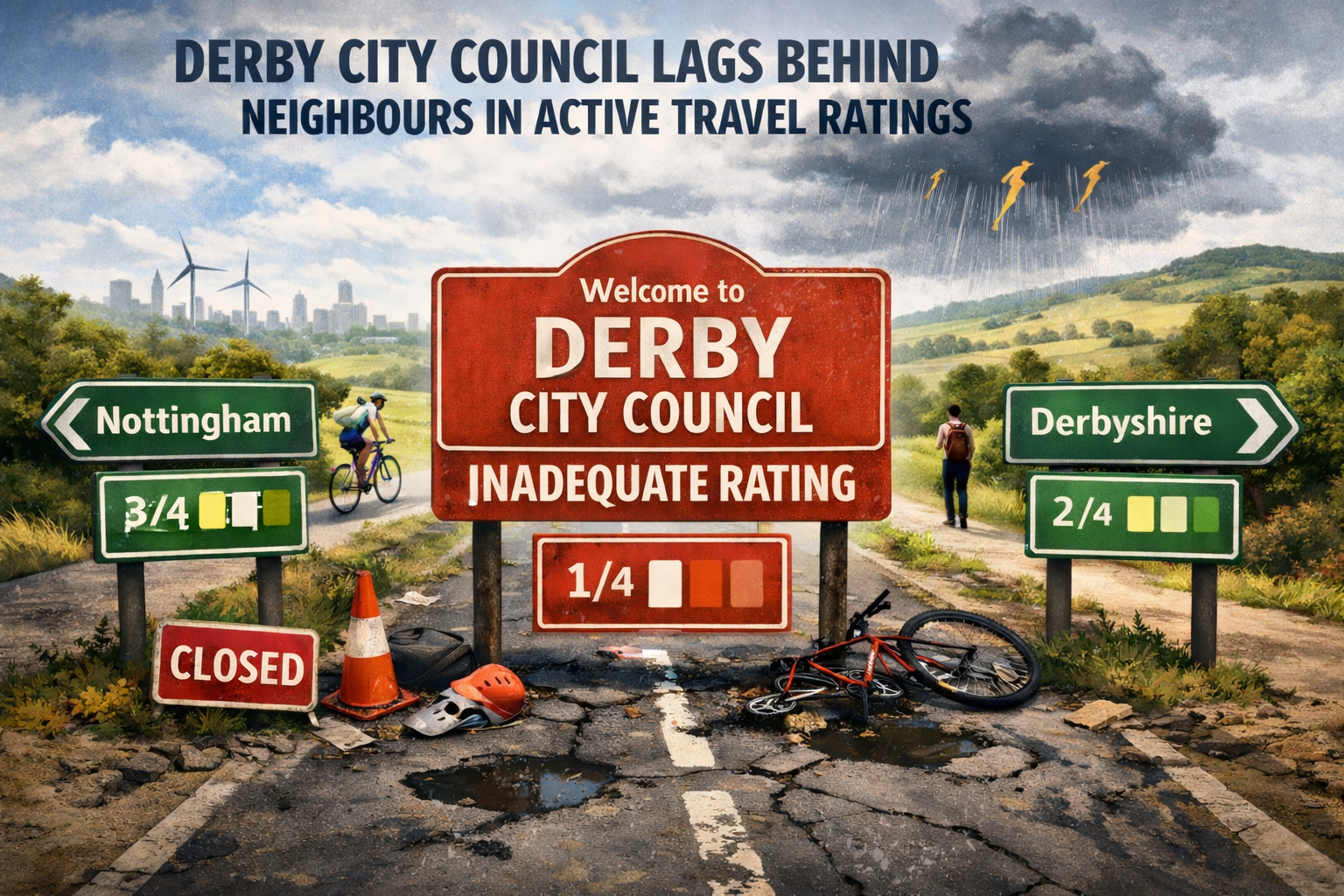 The latest ratings for each Local Authority (in England outside London) in terms of their Active Travel Capability have now been published by Active Travel England. It isn’t good news for Derby.